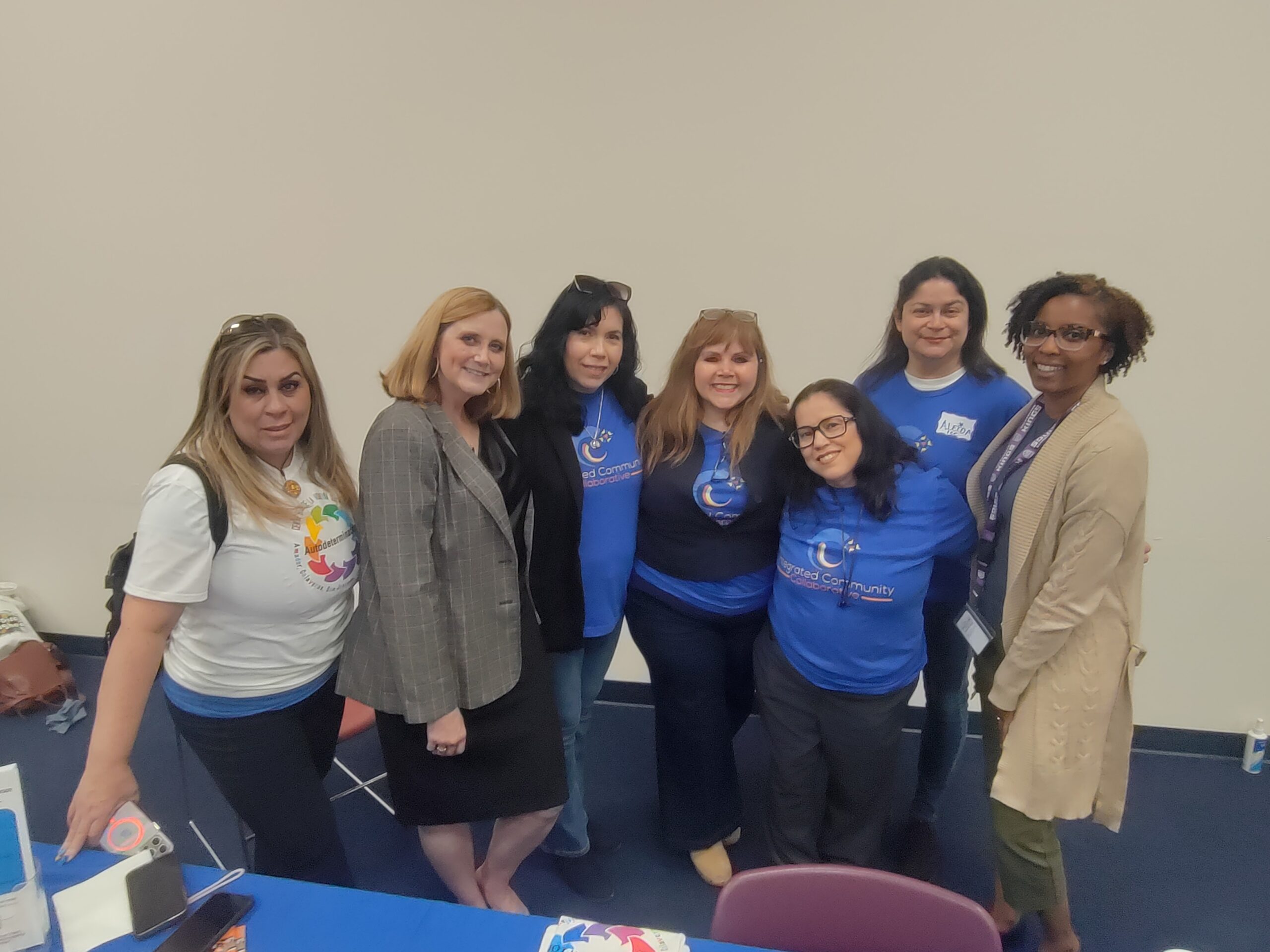 - Ombudsperson Katie Hornberger (second from left) and Office of the Self-Determination Program Ombudsperson representative Jacqueline Davis (first from right) with members of the Integrated Community Collaborative (ICC, @communityintegrated)